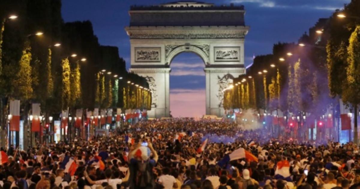 The Champs Elysees and the vast circle around the Arc de Triomphe were packed with an estimated 200,000 fans, who danced, sang and drank late into the night.
