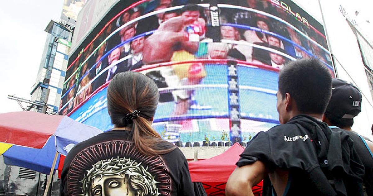 The fight left streets deserted and brought the country to a virtual standstill as Filipinos packed into cinemas, hotels and parks to watch on big screens, while army bases across the Philippines also showed the fight for the troops.