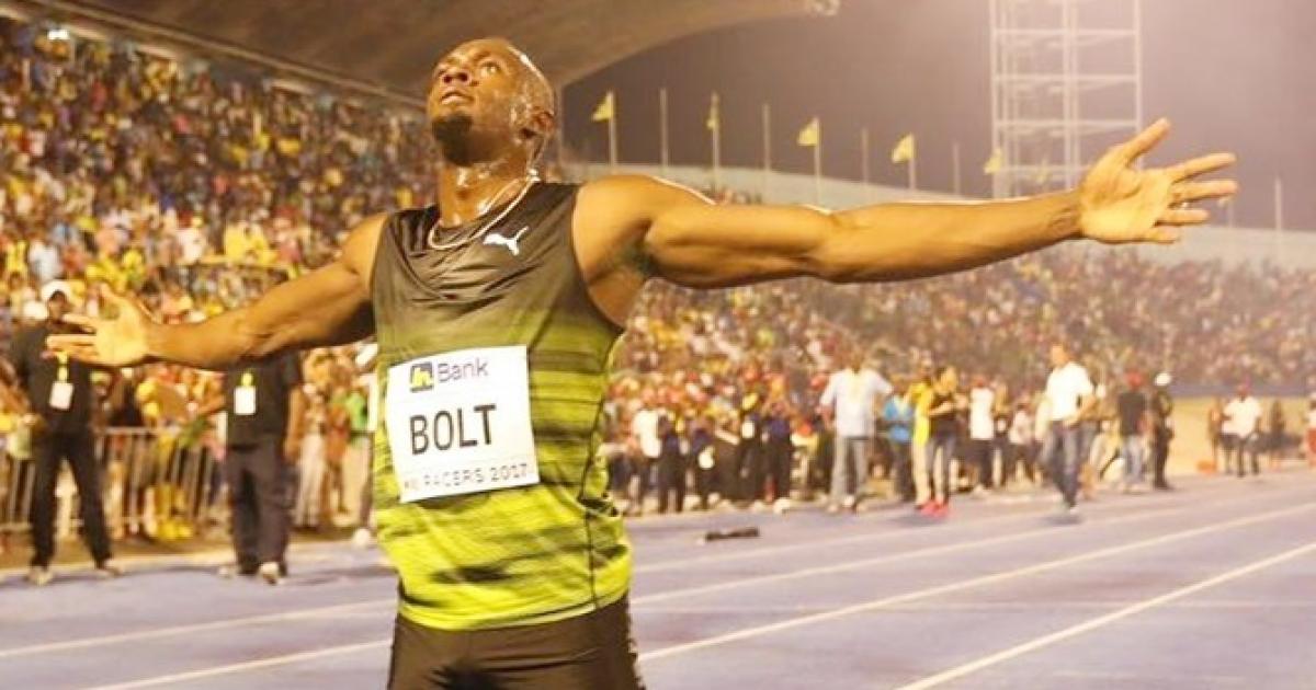 After the race the world's fastest man took a victory lap then returned to the track and the No. 5 lane where he kissed the finish line before flashing his signature lightning bolt pose for the final time at home in his glorious career.