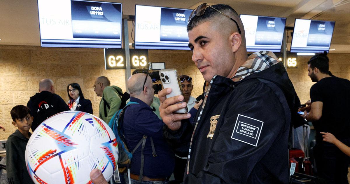 Balloons in the national colours of Israel and Qatar festooned the departure gate for the first commercial flight between the countries on Sunday, permitted by Doha for fans of the World Cup despite the absence of formal bilateral relations.
