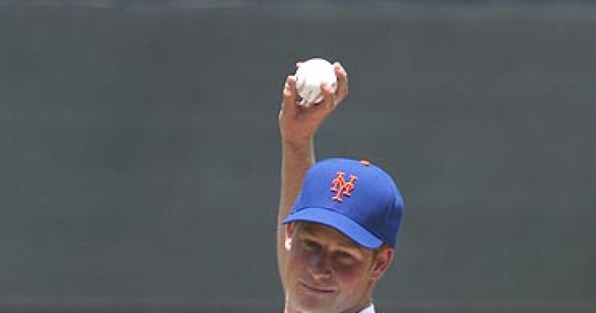 A blue Mets cap on his head, the third in line to Britain's throne tossed a strong ceremonial first pitch before New York's game with the Minnesota Twins.