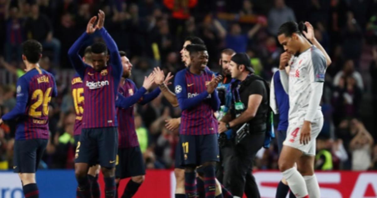 Ousmane Dembele pulled up with a hamstring problem early in the game and the French winger will miss the second leg against Liverpool on Tuesday and is a doubt for the Copa del Rey final and a potential Champions League final.