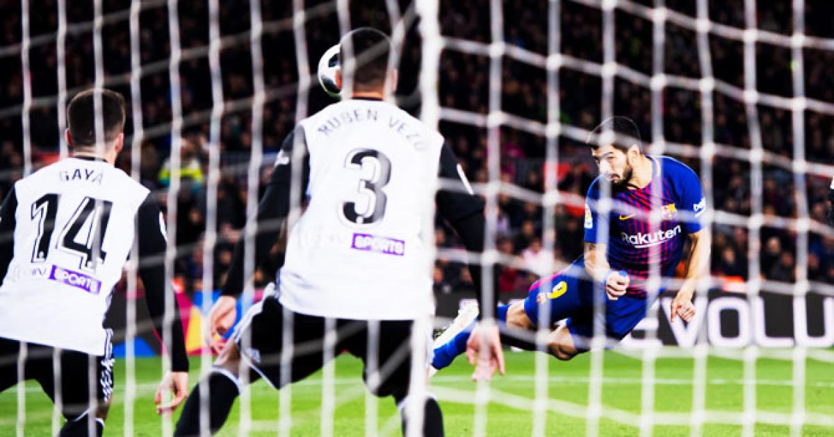 Suarez broke Valencia's resolve in the semi-final first leg by leaping to meet a cross from Lionel Messi in the 67th minute, scoring a 12th goal in 10 games in all competitions to leave Valencia needing to win by two goals in next Thursday's second leg at Mestalla to advance to their first final in a decade.