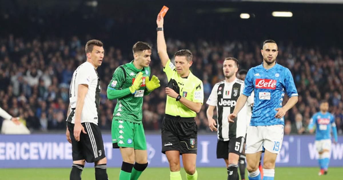 The game hinged on an incident in the 25th minute when Napoli fullback Kevin Malcuit's back pass was intercepted by Cristiano Ronaldo, forcing Meret to come out of his penalty area and lunge at the Portuguese forward who went to ground.