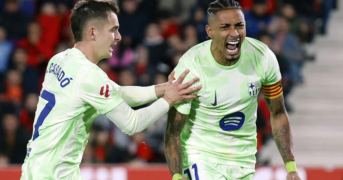 Barcelona captain Raphinha scored twice as they returned to winning ways in LaLiga for the first time in a month with a 5-1 victory at Mallorca on Tuesday, with the visitors netting four times in the second half.