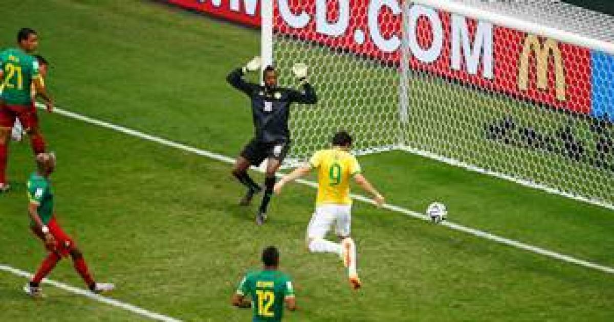 Image: Brazil's Fred scores his team's third goal with a header past Charles Itandje of Cameroon