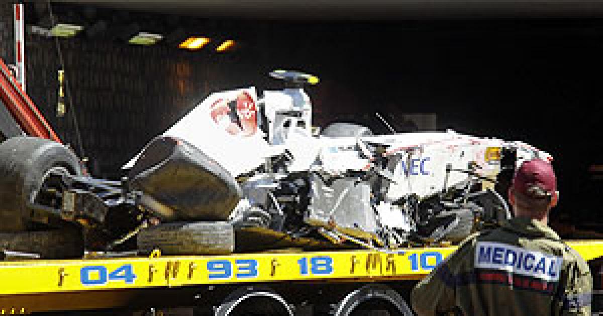Saturday's qualifying had to be halted for more than half an hour after the crash at the tunnel exit in the third and final stage of the session.