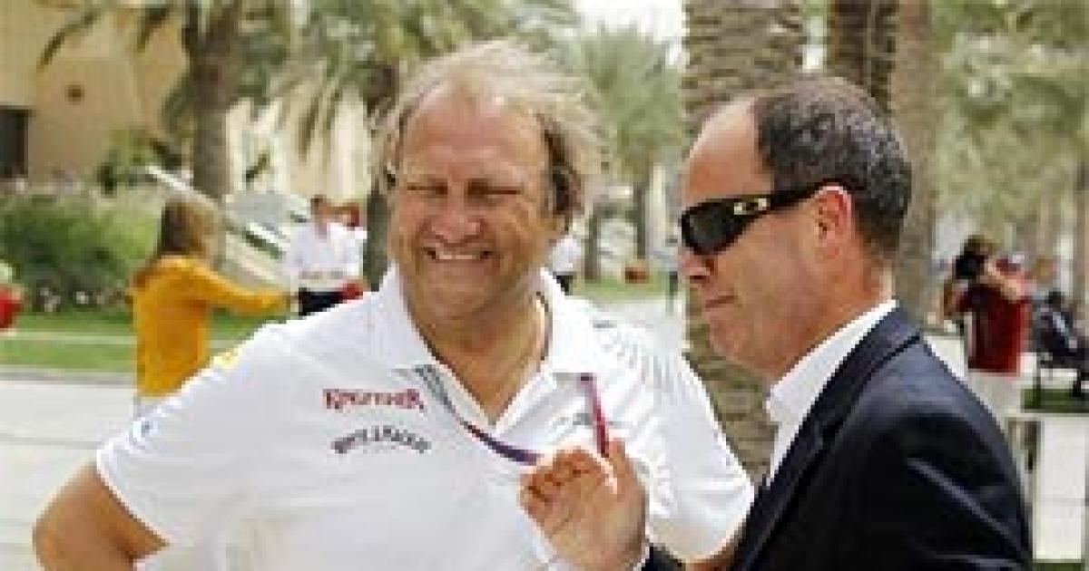 Image: Force India's deputy principal Bob Fernley (left) with John Yates, former assistant commissioner of Britain's Metropolitan Police and current police advisor to Bahrain's Ministry of Interior, at the Bahrain International Circuit in Sakhir, south of Manama.