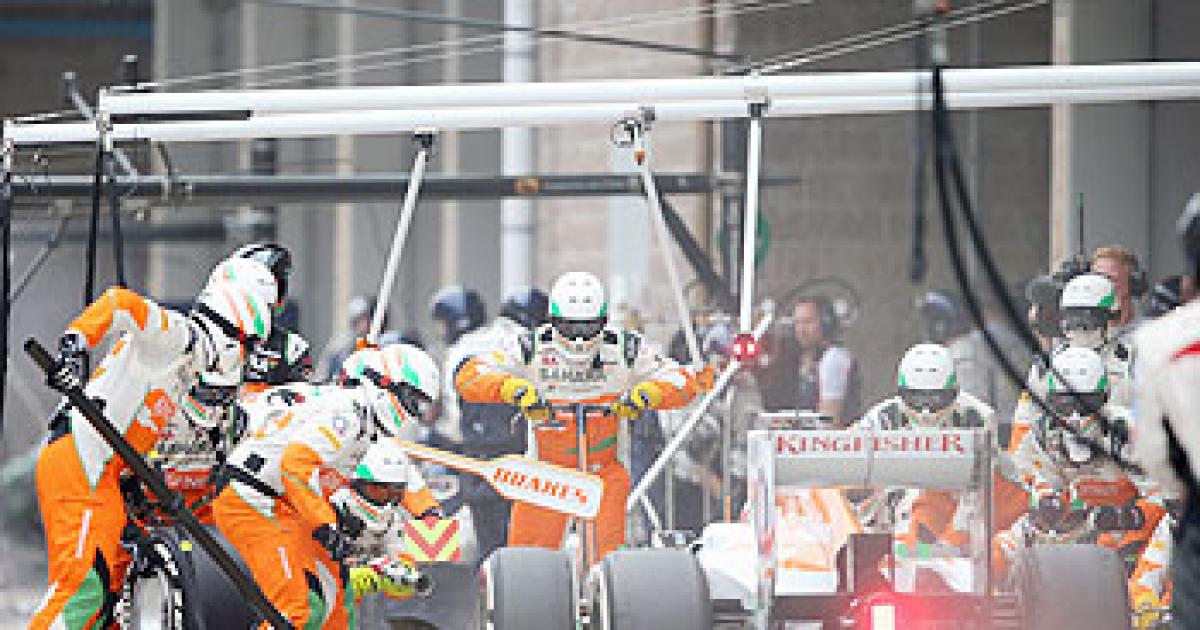 Image: Paul di Resta of Great Britain and Force India stops for a pitstop during the Korean Formula One Grand Prix at Korea International Circuit in Yeongam-gun, on Sunday