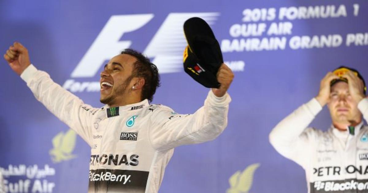 Formula One world champion Lewis Hamilton won the Bahrain Grand Prix for the second year in a row on Sunday with Ferrari's Kimi Raikkonen back on the podium to deny Mercedes another one-two finish under the floodlights.