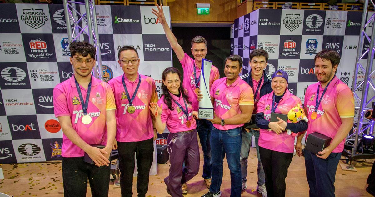 PBG had an amazing run this season, winning eight of the ten matches and securing a spot in the finals with a round to spare. For the defending champions, Triveni, the path to the finals was a bit bumpy: they lost four matches and in the final round they registered a last-minute victory against Alpine SG Pipers led by Magnus Carlsen in a death match for the remaining spot in the finals.