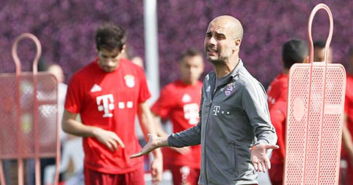 Image: Bayern Munich's coach Pep Guardiola gestures during a training session at his team winter training camp in Doha, Qatar