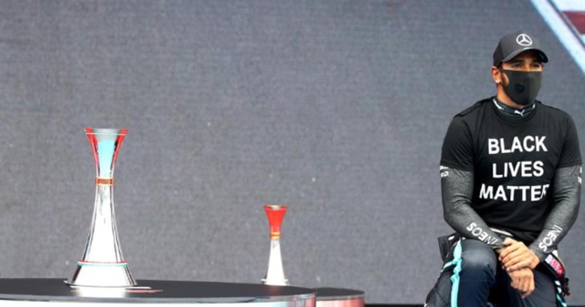 Hamilton, who won from pole position to take the championship lead after three races, again took a knee while wearing a Black Lives Matter T-shirt, but some drivers were either too late or remained standing.