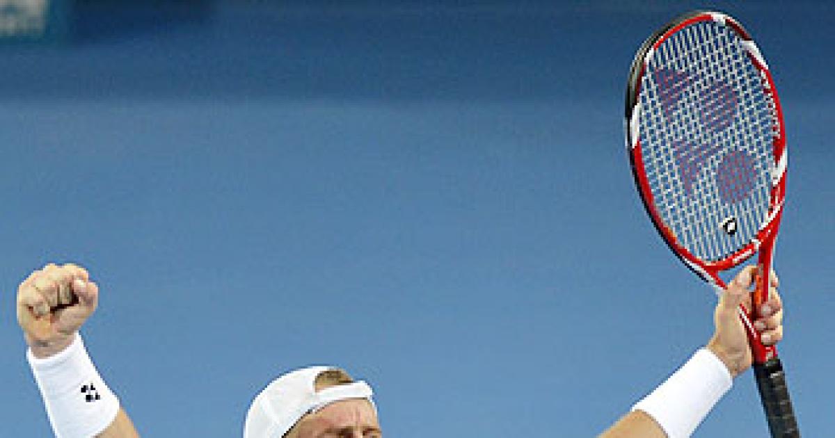 Lleyton Hewitt of Australia celebrates after defeating Roger Federer of Switzerland in the final of the Brisbane International at Queensland Tennis Centre on SundayFederer, who led Hewitt 18-8 in meetings between the former world number ones going into the contest, committed 22 unforced errors on his way to being broken three times in the first set after reaching the final without dropping serve once.