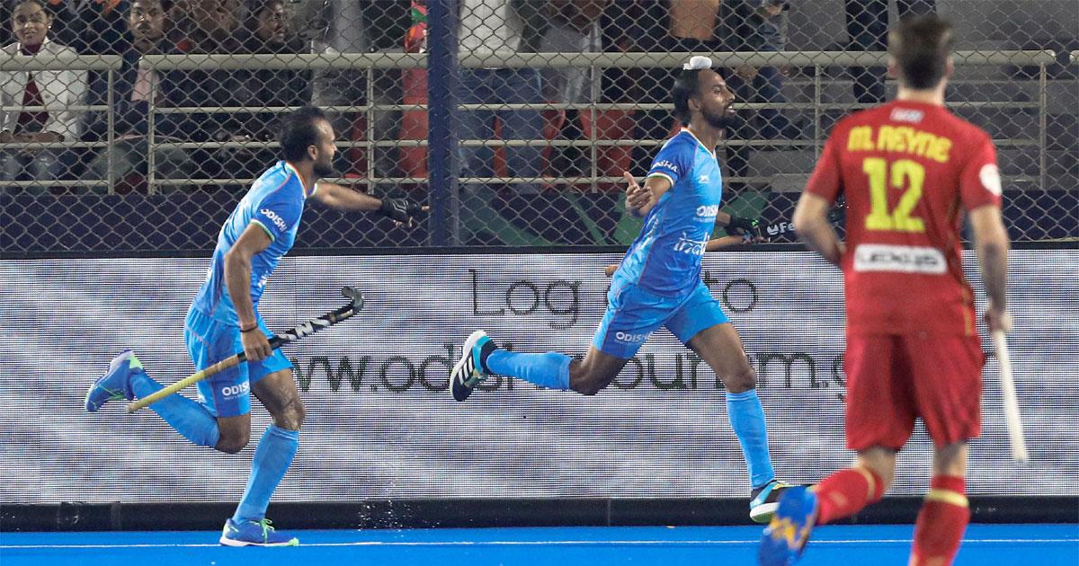 But four minutes from half time, Hardik made a fantastic run down the left channel and then sent a cross on the face of the goal. It beat the Spanish goalkeeper and forced a defender to deflect it in for India's second goal.