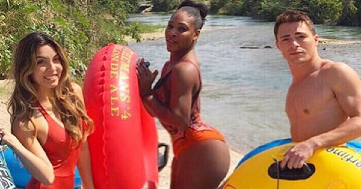 Serena Williams was hanging out with her friends in San Marcos, Texas, and showed off her butt in a skimpy bright orange swimsuit.
