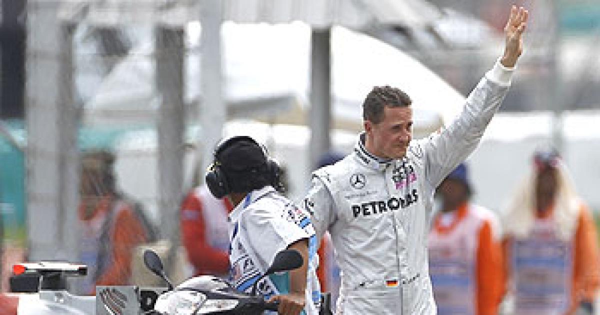 Schumacher, who won the race three times with Ferrari, had to leave his Mercedes on the grass when a nut came off his rear left wheel on lap 10 as the seven-times world champion was running in sixth.