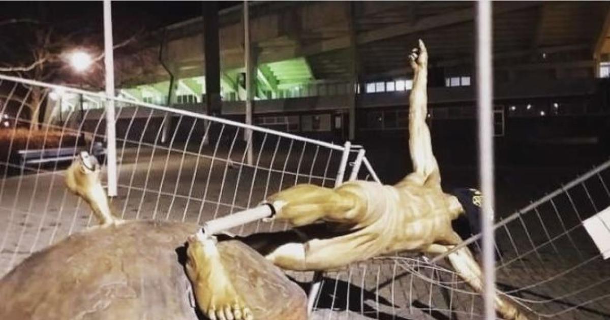 The statue of Zlatan Ibrahimovic erected in his home city has been attacked again and almost completely removed from its plinth outside Malmo Stadium after vandals sawed it off at the ankles.