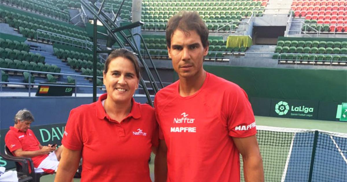 IMAGE: Spain's Davis Cup captain Conchita Martinez (left) with Rafael Nadal before practice in New Delhi on Monday. Photograph: David Ferrer/Twitter