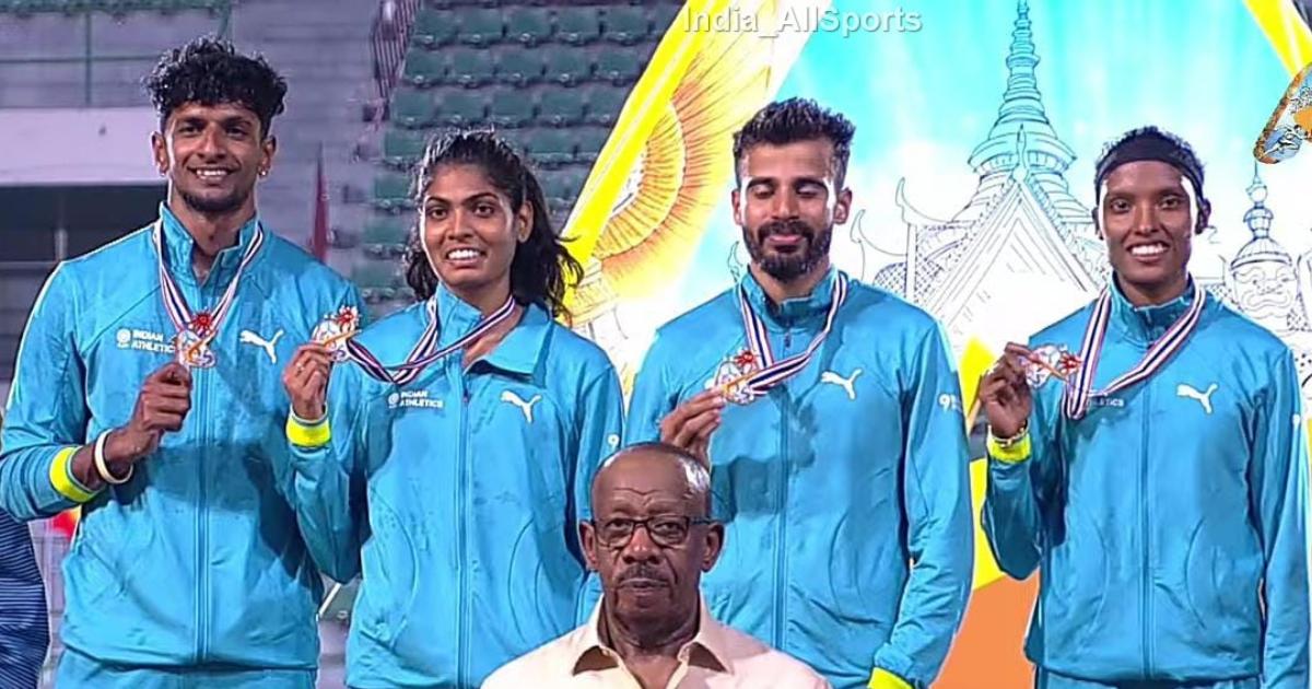 India's mixed 4x400 relay team set a national record while winning the gold medal at the inaugural edition of Asian Relay Championships in Bangkok on Monday, but missed the target of entering the Paris Olympics qualification bracket.
