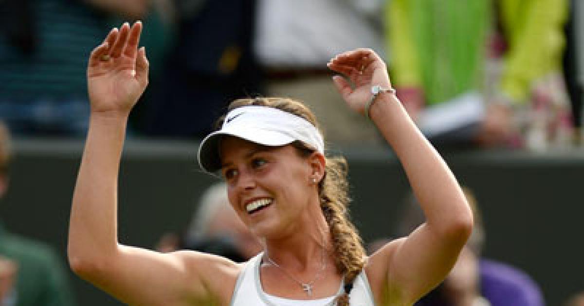 Image: Michelle Larcher de Brito celebrates after winning her second round match against Maria Sharapova.