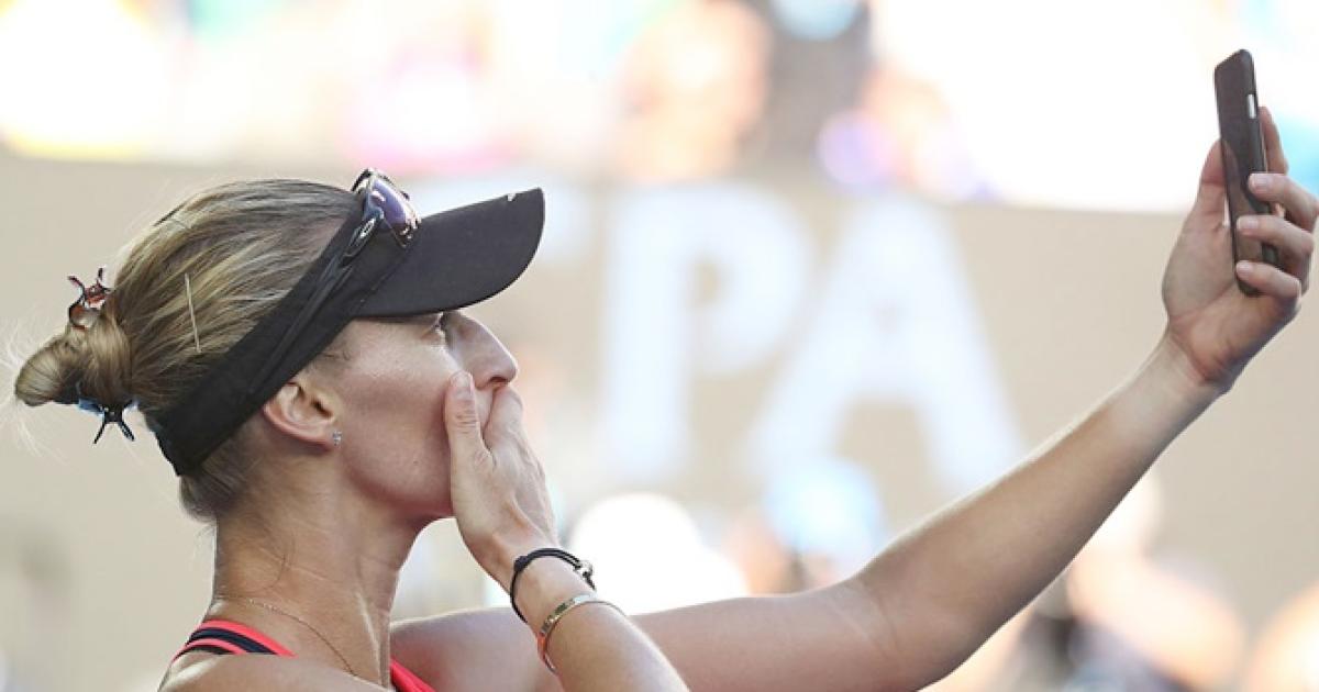She made the most of her moment in the sun, taking time after the defeat to take a selfie with the Rod Laver Arena crowd in the background.