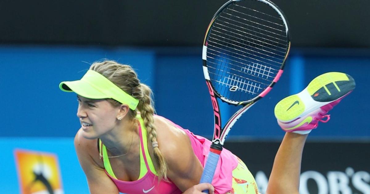 Lime and pink was a popular combination this year – Canada's Eugenie Bouchard sported wristbands to go with her dress and visor.