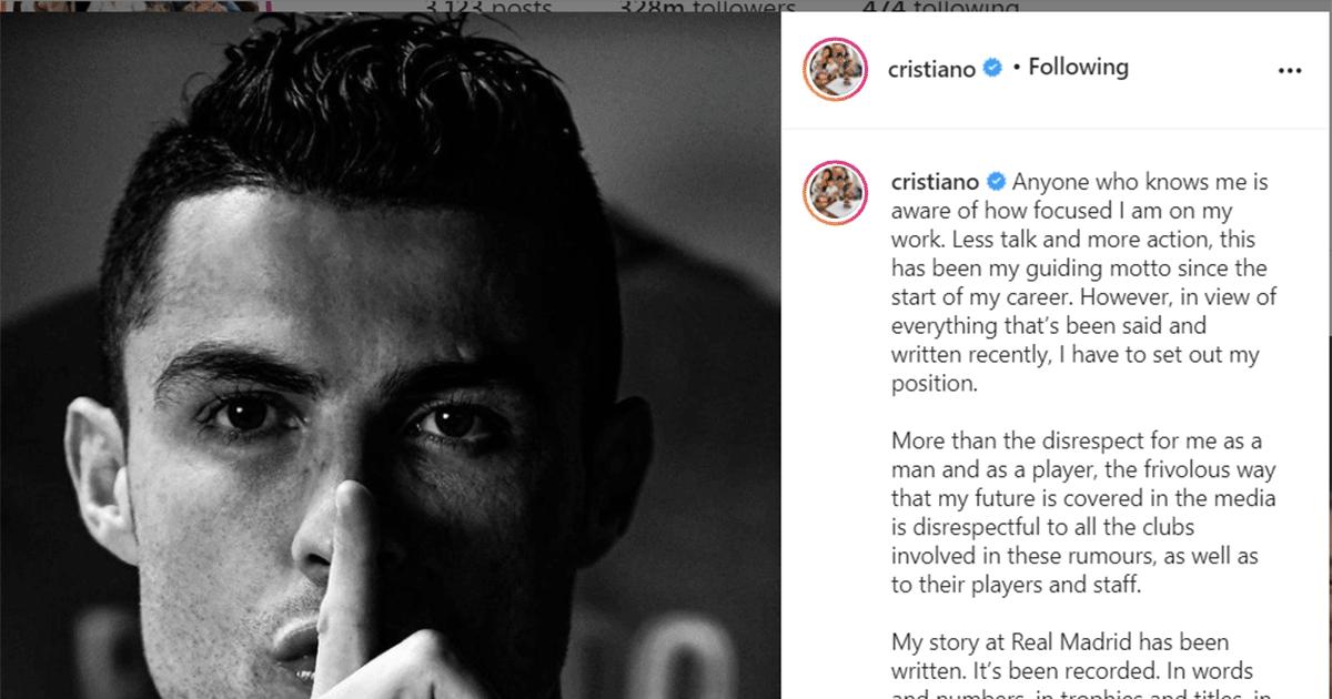 Ronaldo added: "My story at Real Madrid has been written. It's been recorded. In words and numbers, in trophies and titles, in records and in headlines... I know that the true Real Madrid fans will continue to have me in their hearts."