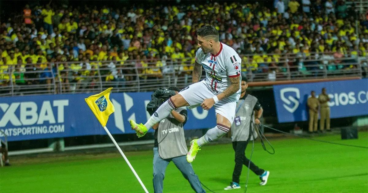 Australian forward Dimitri Petratos scored the season's first hat-trick as ATK Mohun Bagan ran riot against Kerala Blasters to emerge 5-2 victorious in a high-scoring thriller in the Indian Super League in Kochi on Sunday.