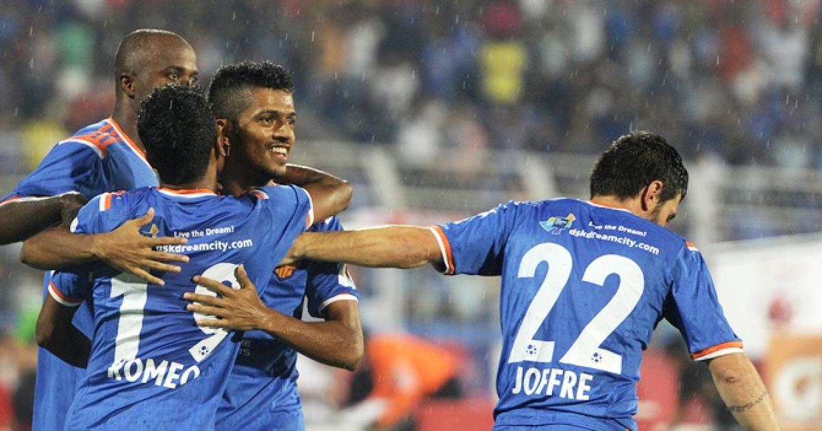 The Goan team, who played a waiting game, scored again in the injury time of the first half. Joffre Mateu Gonzalez, who was brought down just outside the box by defender Vinicius, took the free kick and sent a goal mouth shot, which Reinaldo Oliveira deflected it into the net to have the home team leading 2-0 at half time.