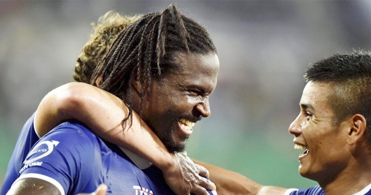 The sanctity of Simonsen’s goal was finally breached in the 34th minute when a pinpoint long throw from Dhanachandra Singh found Mendy who did well to get past Shorey and made no mistake to nudge it in to send the crowd berserk.