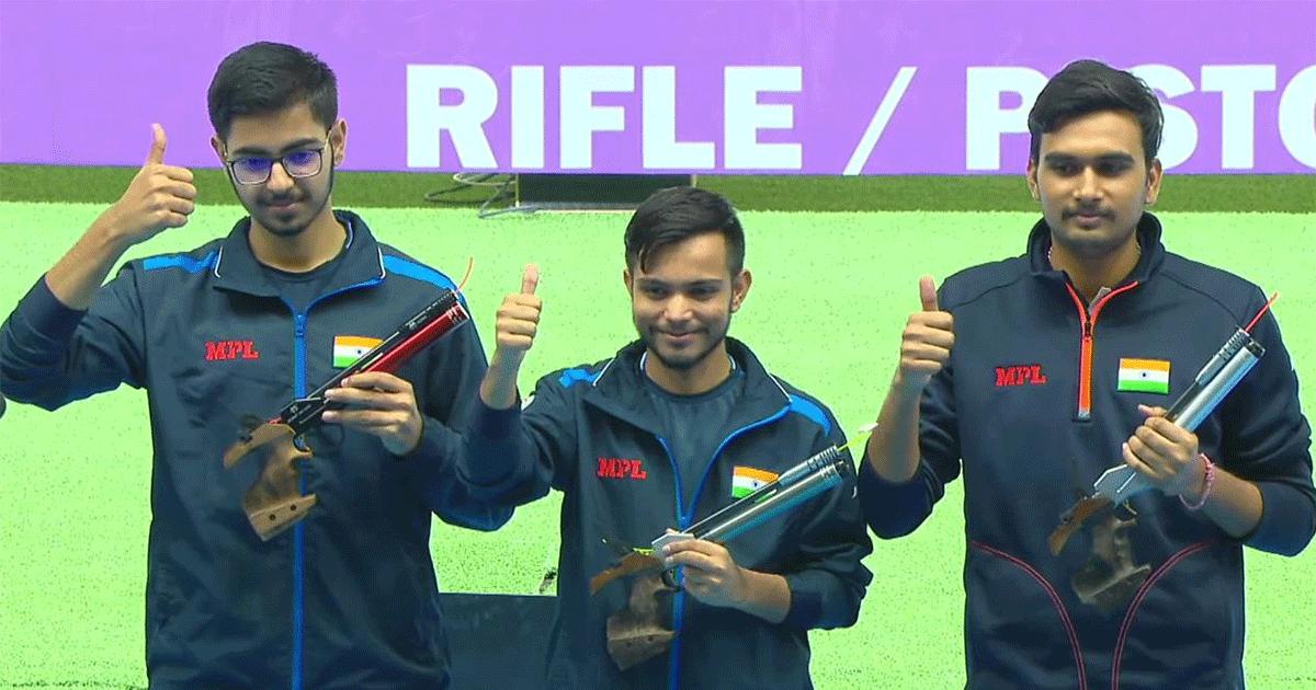 After winning silver and bronze in the individual events, Dangi and Tomar joined Samrat Rana in the team competition to comfortably top qualification stage one with a score of 867 and then the subsequent top eight stage with 577 to make it to the gold medal match against Uzbekistan, comprising Mukhammad Kamalov, Ilkhombek Obidjonov and Veniamin Nikitin.