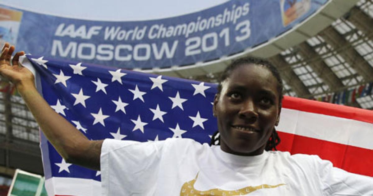 Image: Brittney Reese of the U.S.celebrates after winning the women's long jump final at the IAAF World Athletics Championships at the Luzhniki stadium in Moscow