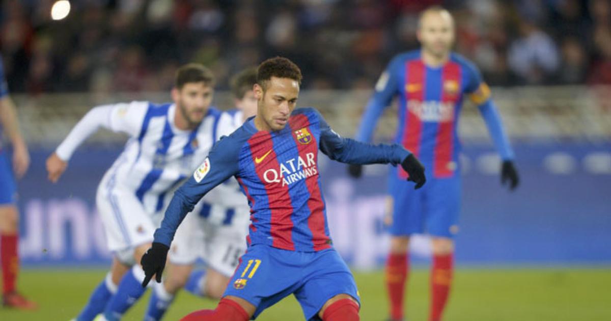 Brazil forward Neymar won and scored a penalty in the 21st minute after being tripped by Aritz Elustondo to decide the game but spurned two clear chances after the break that would have given Barca a more comfortable lead in the tie.