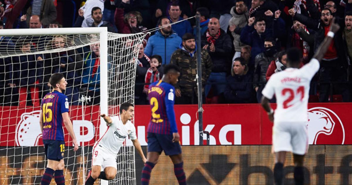 Sevilla produced a brilliant second-half display to beat Barcelona 2-0 in their Copa del Rey quarter-final, first leg on Wednesday, leaving the holders with an uphill task to reach the last four.