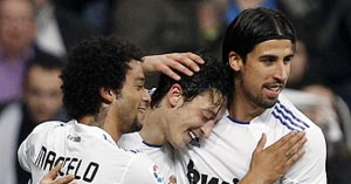 A bizarre last-minute goal from Mesut Ozil wrapped up a 3-1 comeback win for Real Madrid at home to city rivals Atletico Madrid on Thursday, giving them a healthy advantage in their King's Cup quarter-final.