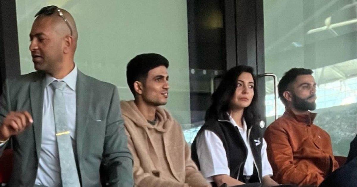 IMAGE: Virat Kohli, Anushka Sharma and Shubman Gill at Wembley. Photograph: Twitter