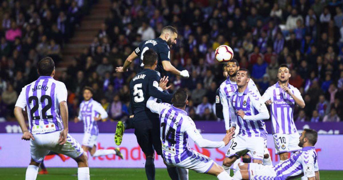 Karim Benzema scored twice after the interval with a penalty and a header from a corner to give Santiago Solari's side a 3-1 lead, after Raphael Varane struck in the 34th minute to cancel out Anuar Tuhami's goal for Valladolid five minutes earlier.