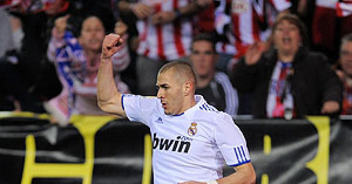 Real Madrid stayed hard on the heels of leaders Barcelona when in-form striker Karim Benzema scored to set them on their way to a 2-1 win at battling city rivals Atletico in La Liga on Saturday.