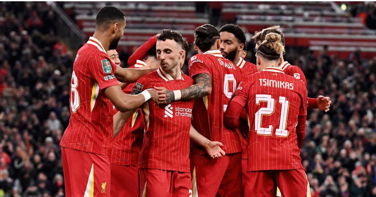 Jota netted his second in the 49th minute when Curtis Jones slotted a reverse pass to the Portuguese player who scored into the bottom corner.