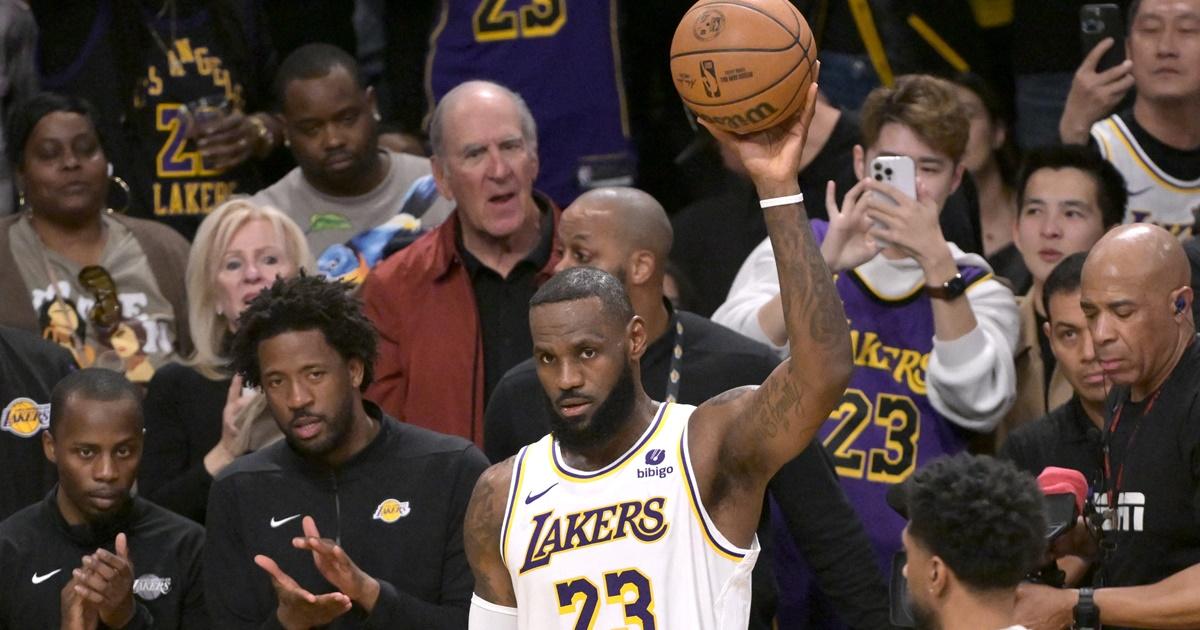 LeBron James on Saturday became the first NBA player to score 40,000 career points, hitting a scoop layup off the glass in the second quarter of the Los Angeles Lakers home game against the Denver Nuggets.