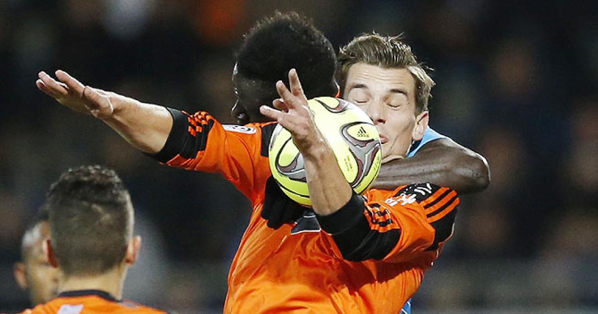 Image: Lorient's Benjamin Jeannot (right) is challenged by Olympique Marseille's Benjamin Mendy during their French Ligue 1 match at the Moustoir stadium in Lorient, on December 2.