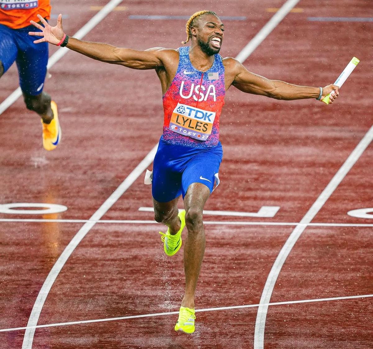 Noah Lyles brought US home in 37.29 to bag his second gold medal after triumphing in the men's 200 individual event, while also claiming bronze in the 100.