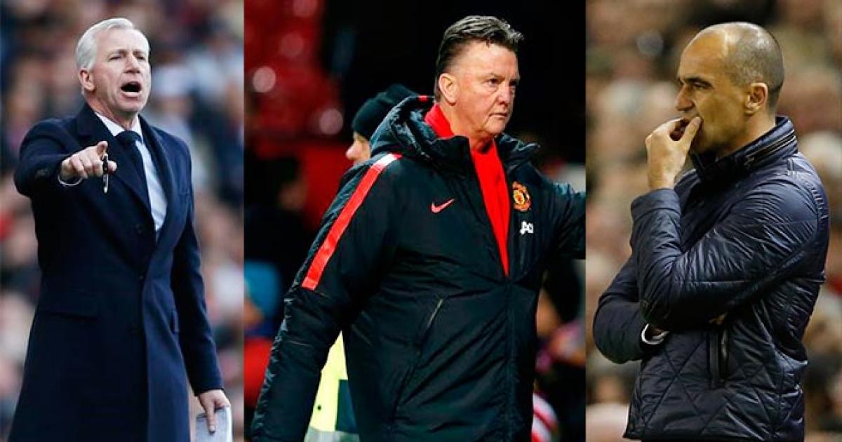 IMAGE: Crystal Palace coach Alan Pardew (left), Manchester United coach Louis van Gaal (centre) and Everton manager Roberto Martinez. Photograph: Stefan Wermuth/Livepic/Reuters, Phil Noble/Reuters, and Carl Recine/Action Images via Reuters