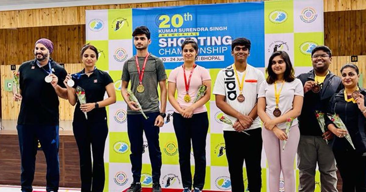 Esha Singh of Telangana, who had won the individual women's 10m air pistol title on Saturday, claimed two bronze medals on the day. She teamed up with Kaushik Gopu to win bronze in both the senior and junior mixed team competitions.