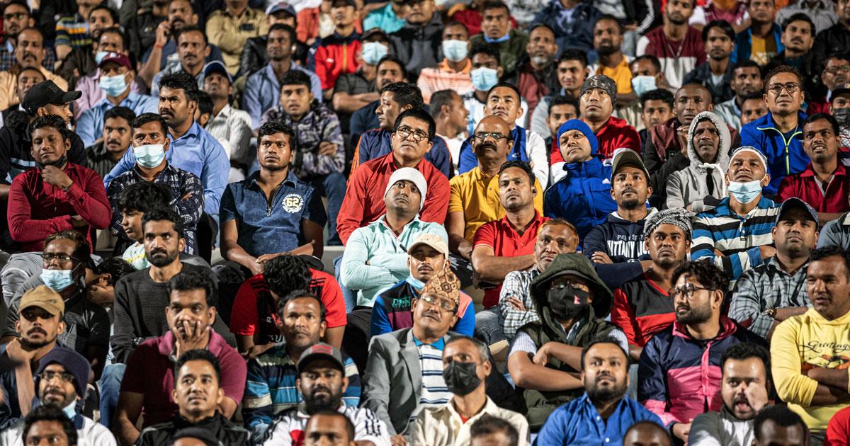 Taking selfies from the stands and sitting on the grassy pitch, thousands of migrant workers gathered in a Doha stadium to watch the opening match of the first World Cup in the Middle East.