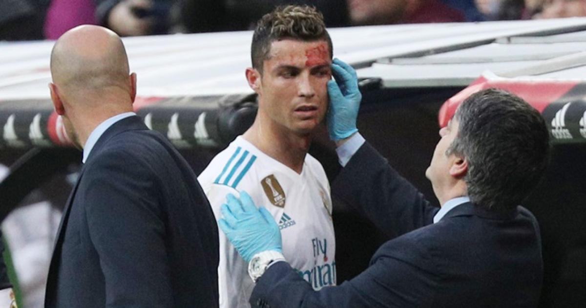 Ronaldo was left with his entire face drenched in blood and required treatment