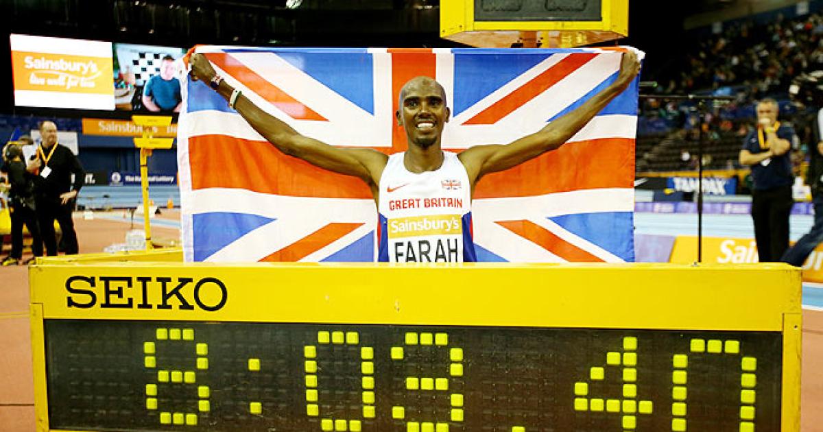 Mo Farah set the first world record of his glittering distance running career on Saturday when he established a new indoor two-mile mark in Birmingham.