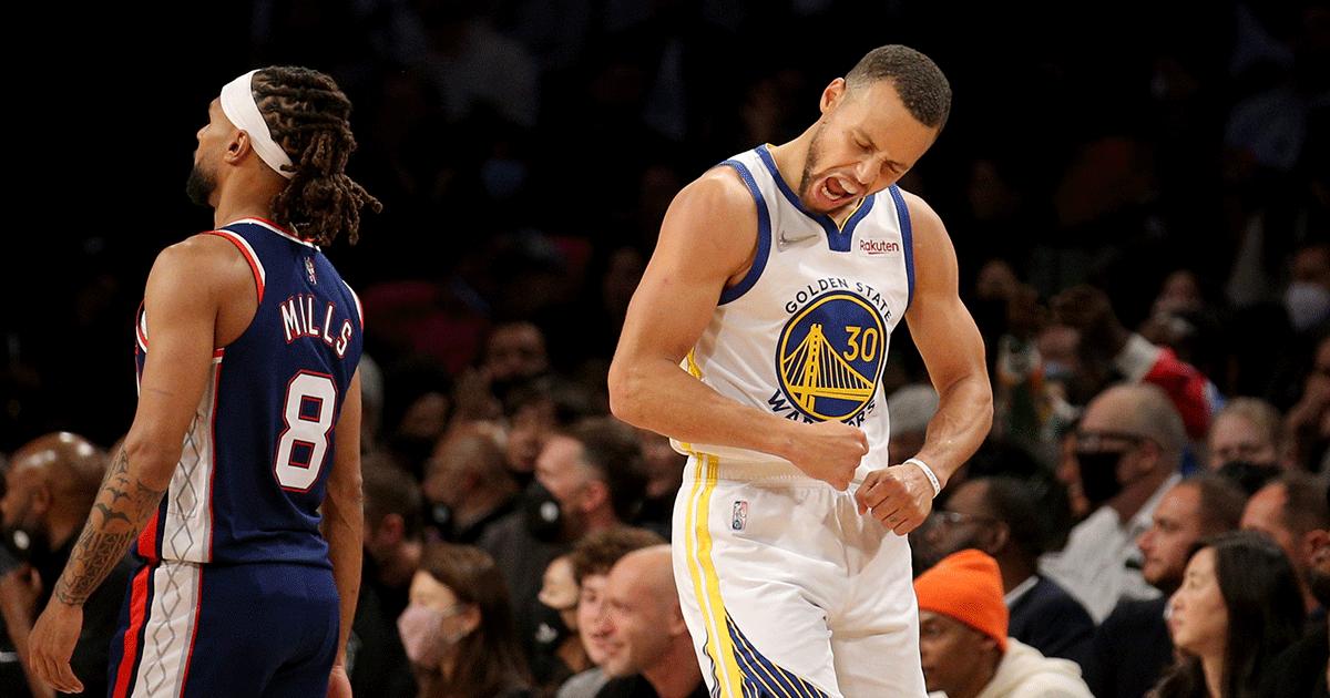Stephen Curry scored 37 points and tied a season best by hitting nine 3-pointers as the Golden State Warriors took command in the third quarter and rolled to a 117-99 victory over the Brooklyn Nets in New York.