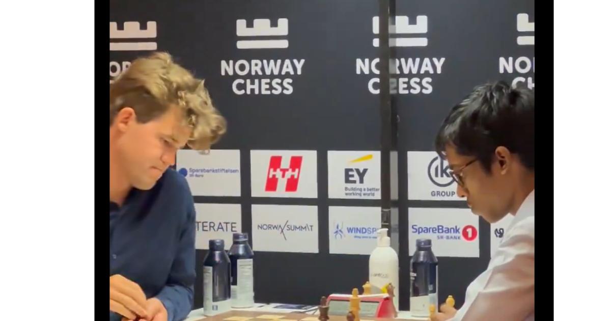 Indian Grandmaster R Praggnanandhaa went down fighting against top seed Magnus Carlsen of Norway while his elder sister defeated overnight sole leader Anna Muzychuk of Ukraine in the eighth round of Norway chess tournament in Stavanger, Norway.